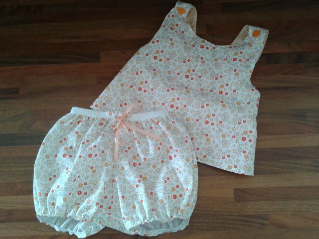J'ai choisi de faire un Elsie du livre "les intemporels pour bébé" et un bloomer du site "petit citron". Le Elsie n'existant pas en taille mini pour petit bébé, il a fallu que j'adapte !