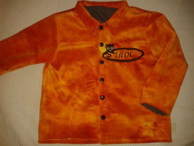 En partant du patron du Imke garcon en 4 ans, j'ai fait un manteau citrouille pour Liloé en 3 ans.