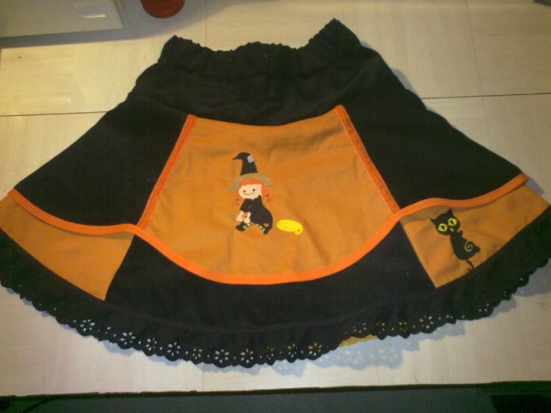 Il va très bien avec la petite jupe faire l'an dernier qui va toujours à Liloé et qui lui ira encore l'an prochain je pense. C'était un insa d'halloween avec le même set de broderie