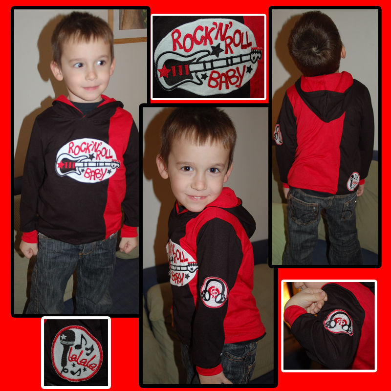 J'avais jusqu'à aujourd'hui très peu d'idée couture pour mon petit mec. Mais quand j'ai vu ces broderies j'ai eu tout de suite l'idée de ce que j'allais lui faire. Comme en plus il adore le rock , ça tombait nickel !