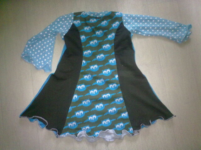 J'ai choisi de la faire en jersey alors que normalement elle est en coton. Je lui ai ajouter des manches aussi, celles du imke. Le résultat me plait bien mais j'aime mieux le dos que le devant. J'aurai du inverser les couleurs.